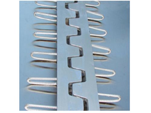齒型伸縮縫一般分類為豎齒型及鋸齒型伸縮縫主結(jié)構(gòu)為兩片豎齒或鋸齒狀鋼板,其凹凸鋼板相互交錯(cuò),藉由鋼板交錯(cuò)間隙伸縮,不致相擠壓,并可維持行車平順[6]。其下設(shè)有排水槽以排除橋面流水,側(cè)邊焊接錨碇鋼板或鋼筋,由于構(gòu)件主要以鋼材組成,組件單純,材料單價(jià)相對(duì)低廉。最常設(shè)于 1~3 跨數(shù)橋梁,近年來(lái)由于鋼制品焊接技術(shù)提升與設(shè)計(jì)技巧不斷演進(jìn),亦逐漸應(yīng)用到 200 余公尺多跨橋梁,由于工廠制造后,安裝、養(yǎng)護(hù)容易,管理單位與用路人長(zhǎng)久以來(lái)接受度較高,目前此類型橋面伸縮縫應(yīng)用仍甚為普遍。國(guó)內(nèi)制造齒型鋼板伸縮縫產(chǎn)品一般在 5 公分至 25 公分間,但為因應(yīng)長(zhǎng)橋需求,目前已有生產(chǎn)伸縮量達(dá) 48 公分豎齒型鋼板伸縮縫。歐美國(guó)家更已制造伸縮量達(dá) 70 公分巨型豎齒型伸縮縫,已趨具備因應(yīng)長(zhǎng)橋需求伸縮功能考慮設(shè)計(jì)。