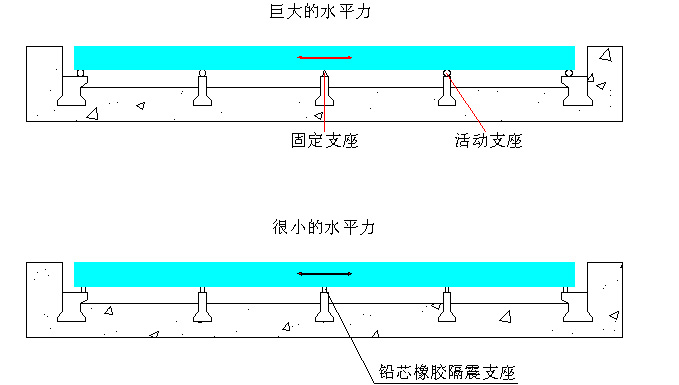 傳統(tǒng)橋梁是將一連橋梁中的一至二個(gè)墩與上部梁固接,其它墩上放置盆式或板式支座以適應(yīng)熱脹冷縮的變形。至于抗震主要是通過(guò)增加橋梁結(jié)構(gòu)、構(gòu)件自身的強(qiáng)度、延性、耗能能力來(lái)實(shí)現(xiàn)。