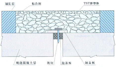 將專用物制的彈塑體主料RS 橡膠加熱熔溶后,灌入經(jīng)加熱的碎石中,形成‘TST 橋梁接縫彈塑體”。碎石支持車輛荷載,TST一Z 專用粘合劑保證界面強(qiáng)度。